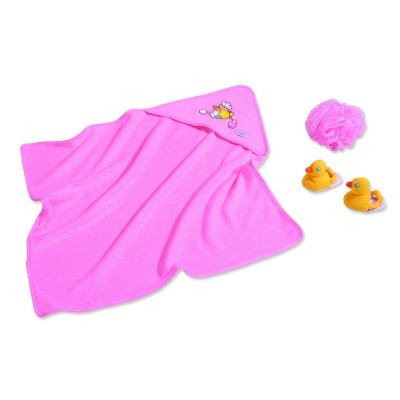 Badespaß classic SetMit dem weichen Schwamm macht das Waschen Spass und nach dem Baden wärmt sich Baby Born in ihrem kuscheligen Handtuch und mit den lustigen Entenschuhen.