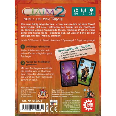 Der neue König ist gestorben - er war nur ein Jahr auf dem Thron! Jetzt treten fünf neue Fraktionen den Kampf um die Nachfolge an. Winzige Gnome, trampelnde Riesen, mächtige Drachen, weise Seher und listige Trolle - überlege gut, auf wessen Seite du dich schlägst, um den Thron zu erringen!