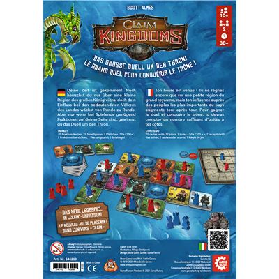 Deine Zeit ist gekommen! Noch herrschst du nur über eine kleine Region des großen Königreichs, doch dein Einfluss bei den bedeutendsten Völkern des Landes wächst von Runde zu Runde. Aber nur wenn bei Spielende genügend Fraktionen auf deiner Seite sind, gewinnst du das Duell um den Thron.