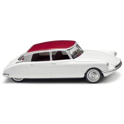 Es kommt eben auf die richtige Wahl der Farben an – WIKING ist das gelungen. Die weiße Karosserie mit passend weinrotem Interieur, dazu das im satten Rubinrot kontrastierende Dach, machen den Citroën ID 19 zu einem zeitgenössischen Klassiker. So wünschte man sich damals in Frankreich, aber auch den benachbarten Ländern wie Deutschland oder den Niederlanden jene Limousine französischer Designkunst, die bis heute eine Alleinstellung genießt. WIKING miniaturisiert die „Göttin“ der automobilen Geschichte Frankreichs in zeitgenössischer Eleganz. Das Vorbild sollte europäische Fahrzeuggeschichte schreiben. So wurde ein für die damalige Zeit gigantischer cw-Wert von 0,38 realisiert, ein Vorreiter aerodynamischen Fahrzeugbaus. Erst 1975 endete die Produktion dieses Citroëns, dessen Baureihen 1,5 Millionen Fahrzeuge auf die Straße bringen sollten.