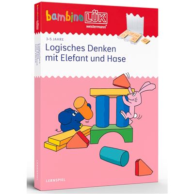 Das bambinoLÜK‑Set „Logisches Denken mit Elefant und Hase“ richtet sich an Mädchen und Jungen ab ca. 3 Jahren, die auf spielerische Weise ihre Denk- und Wahrnehmungsfähigkeiten erkunden möchten. Das liebevoll illustrierte Übungsheft enthält vielfältige Aufgabenstellungen rund um Formen, Reihen, Zuordnungen, Zählen und Vergleichen. Begleitet werden die Kinder dabei von den bekannten WDR‑Figuren Elefant und Hase.