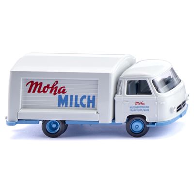Der Verkaufswagen auf Borgward-Fahrgestell im Design der „Moha Milch“ bringt ein Stück deutscher Konsumgeschichte zurück in den Modellmaßstab 1:87. In den 1950er-Jahren war die Haus-zu-Haus-Belieferung durch regionale Molkereien fester Bestandteil des Alltags – insbesondere im Rhein-Main-Gebiet. Der charakteristische Lieferwagen mit Milchflaschen-Einsatz erinnert an die Zeit, als die Großmolkerei Moha aus Frankfurt-Sossenheim ihre Produkte nicht nur regional, sondern im Auftrag der US-Armee sogar bundesweit auslieferte.